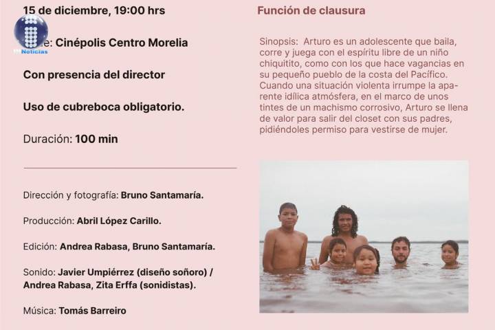 NOTICIAS 10/12/2020Festival de cine de diversidad sexual cerrará con la película "Cosas que no hacemos"Con la cinta "Cosas que no hacemos" el festival de cine de diversidad sexual, Cuórum, ofrecerá una función de clausura el próximo 15 de diciembre, a las 7 de la noche en Cinépolis Centro Morelia, presentación a la cual asistirá el director del filme, Bruno Santamaría.