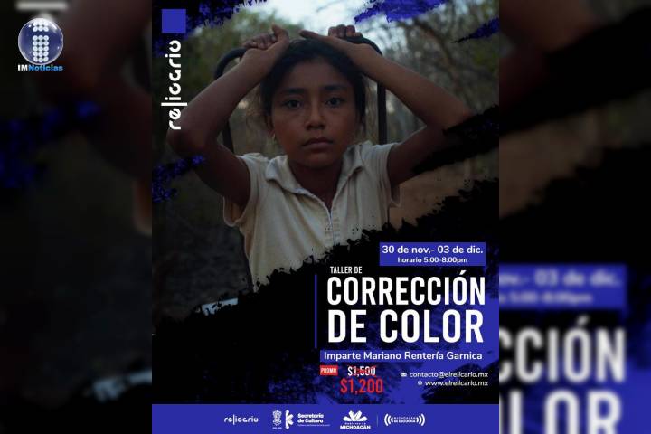 NOTICIAS 12/11/2020Inscripciones abiertas a taller de postproducción de imagen El Relicario, productora mexicana de cine y contenido audiovisual, impartirá un taller en el que directores de fotografía, editores o cualquier persona interesada en el tema, aprenderá herramientas esenciales para realizar la corrección de color de cualquier proyecto al que se enfrente, con apoyo de la Secretaría de Cultura del Estado.