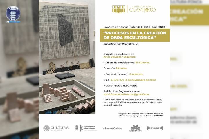 NOTICIAS 27/10/2020Impartirán taller sobre procesos en la creación de obra escultóricaComo parte de su programa académico, durante noviembre el Centro Cultural Clavijero invita a estudiantes y artistas especializados en las áreas de Artes Visuales / Escultura al taller "Procesos en la creación de obra escultórica".