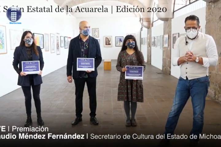 NOTICIAS 31/08/2020Premian a tres jóvenes en el XXI Salón de la Acuarela El Salón de Acuarela, que tiene el objetivo de mostrar lo mejor de la pintura en acuarela que crean los artistas de Michoacán, realizó su ceremonia de premiación a través de Facebook Live de la Secretaría de Cultura del Estado, en la cual se reconoce a tres jóvenes artistas.