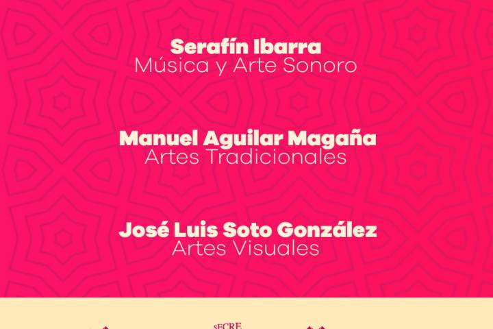 NOTICIAS 05/09/2020Anuncian a los ganadores del Premio Estatal "Erendira"Serafín Ibarra, en la disciplina de Música y Arte Sonoro; Manuel Aguilar Magaña, en Artes Tradicionales; y José Luis Soto González, en Artes Visuales, recibirán el Premio Estatal de las Artes Eréndira, máximo galardón que otorga el Gobierno del Estado, a través de su Secretaría de Cultura (Secum), en reconocimiento al talento michoacano y la gran trayectoria de los creadores.