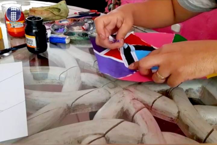 Geraldine Guillen enseña cómo hacer sellos de fomi, mientras que Laila Mariza y su Tita Carmen Ramírez elaboran instrumentos con m... Ver más...