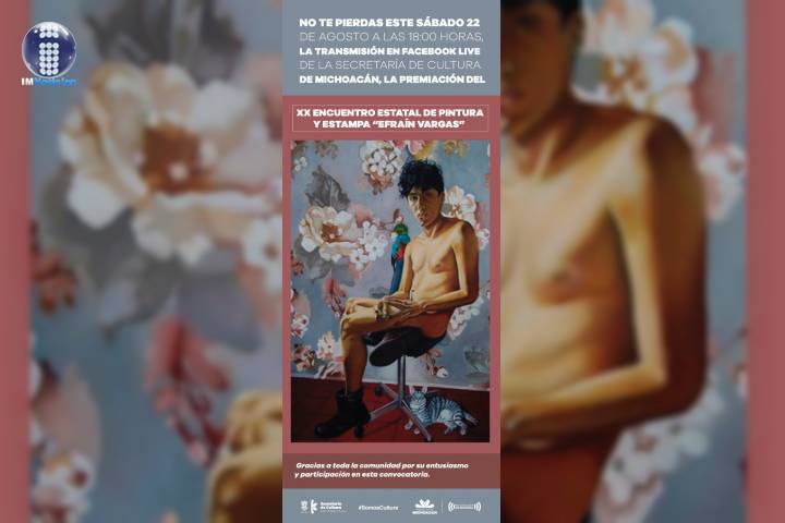 NOTICIAS 21/08/2020Invitan a premiación virtual del Encuentro Estatal de Pintura y Estampa EfraÃn VargasCon la finalidad de mostrar lo mejor de la pintura y estampa de Michoacán, la SecretarÃa de Cultura del Estado invita al público en general a la premiación del XX Encuentro Estatal de Pintura y Estampa EfraÃn Vargas, que se llevará a cabo a través de Facebook Live, este sábado a las 6 de la tarde.