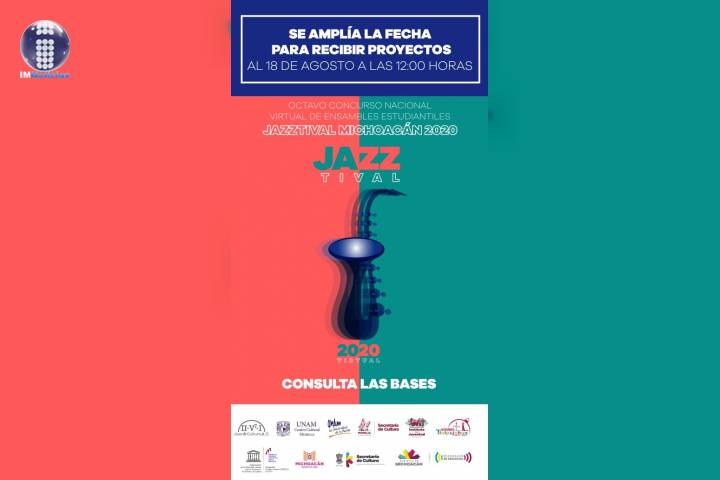 NOTICIAS 13/08/2020Se amplía el plazo para participar en el Concurso Nacional de Ensambles de Jazz El Comité Organizador del Jazztival Michoacán 2020 Virtual, determinó que será el próximo martes 18 de agosto cuando cierre el plazo para participar en el Octavo Concurso Nacional Virtual de Ensambles Estudiantiles de Jazz, mismo que está dirigido a grupos conformados en el seno de alguna institución o escuela de música, pública o privada, de cualquier estado de la República, cuyos integrantes deben comprobar que pertenecen a la institu... Ver más...