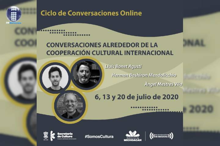 NOTICIAS 02/07/2020Conversaciones alrededor de la Cooperación Cultural InternacionalLos retos del presente y del futuro de la cultura, serán analizados en el ciclo de conversaciones online sobre la Cooperación Cultural Internacional, con profesores y expertos del Programa de Gestión Cultural de la Universidad de Barcelona, a realizarse en julio por la Secretaría de Cultura de Michoacán, a través de las redes sociales del Centro Cultural Clavijero.