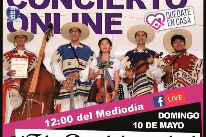 NOTICIAS 09/05/2020Orquesta Purhépecha les cantará a las mamás Las propuestas artísticas dedicadas a las mamás siguen surgiendo a través de las redes sociales, y este domingo 10 de mayo, la Orquesta Purhépecha Tradicional integrada por jóvenes músicos, ofrecerá un concierto a partir de las 12:00 horas.
