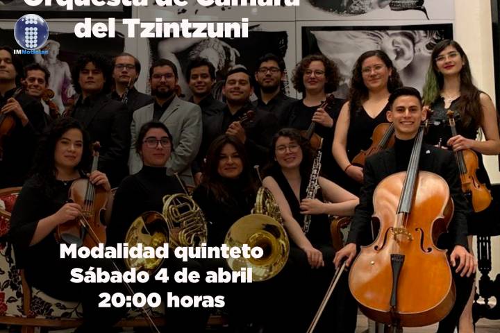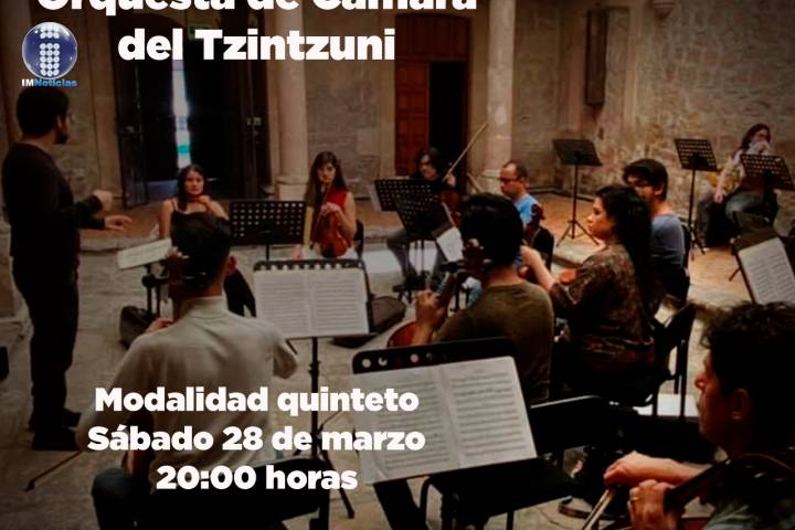 NOTICIAS 28/03/2020Orquesta de Cámara del Tzintzuni se presenta este sábado por las redes de SeCulturaLa Orquesta de Cámara del Tzintzuni, en su modalidad de quinteto, se presentará este sábado 28 de marzo a las 20:00 horas por las redes sociales de la Secretaría de Cultura Morelia.