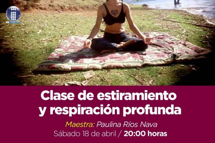 NOTICIAS 16/04/2020#CulturaEnTuCasa comparte este sábado clase de estiramiento y respiración profunda A las cápsulas creativas que desarrolla el Gobierno de Morelia a través de la Secretaría de Cultura Municipal con el programa #CulturaEnTuCasa, se integran clases de estiramiento y respiración profunda que compartirá este sábado 18 de abril a las 20:00 horas, la maestra y bailarina del estudio de danza SenZa, Paulina Ríos.