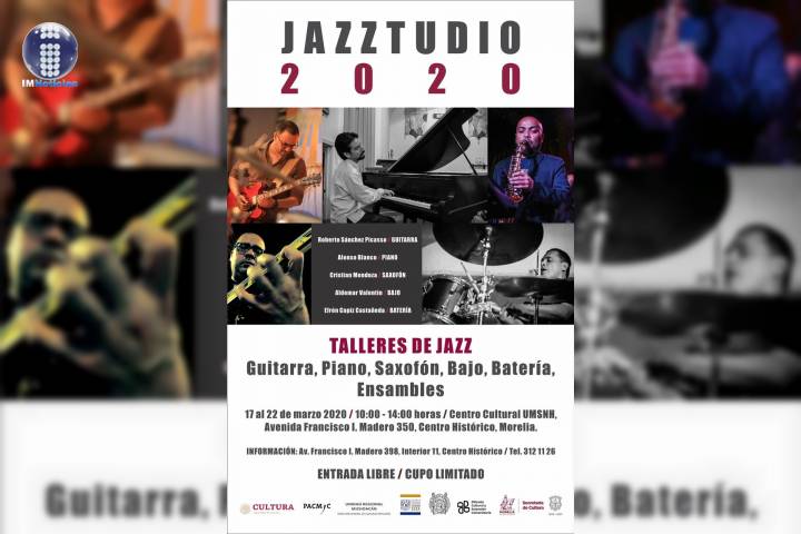 NOTICIAS 21/02/2020Invita SeCultura a los talleres del Jazzstudio 2020Del 17 al 22 de marzo, Morelia se convertirá en Un Gran Escenario para el Jazzstudio 2020, que realizará diversos talleres para músicos estudiantes y profesionales interesados en adquirir formación e información Intermedia-Avanzada en el lenguaje del jazz.