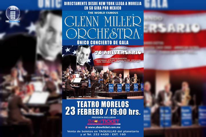 NOTICIAS 23/02/2020Este domingo, Morelia será sede del 78 Aniversario de "The Glenn Miller Orchestra"El Teatro Morelos de la capital michoacana será sede de un magno concierto de gala, con el que se celebran 78 Años en la música para "The Glenn Miller Orchestra", este domingo con una única función a las 7:00 PM.