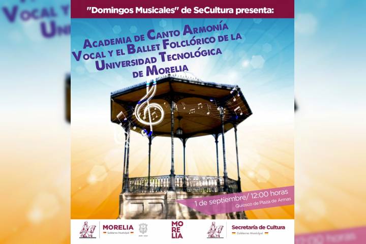 NOTICIAS 28/08/2019SeCultura y UTM presentarán música y danza este domingoLa colaboración interinstitucional que realiza la Secretaría de Cultura de Morelia continúa rindiendo frutos, y para fortalecer el ámbito cultural entre la ciudadanía y las nuevas generaciones, SeCultura une esfuerzos con la Universidad Tecnológica de Morelia para el programa Domingos Musicales.