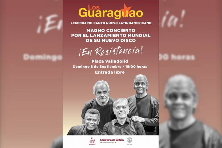 NOTICIAS 04/09/2019 Los Guaraguao llegan este domingo a Morelia Morelia será un Gran Escenario musical con el concierto del emblemático grupo venezolano Los Guaraguao, que llega a la ciudad este domingo 8 de septiembre a partir de las 18:00 horas en la Plaza Valladolid.