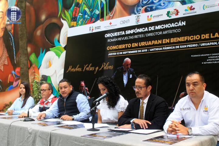La Orquesta Sinfónica de Michoacán (Osidem), ofrecerá a aquí un concierto, en beneficio de la Cruz Roja, delegación Uruapan, que tendrá lugar el jueves 12 del presente mes en el salón Los Telares, de la antigua fábrica textil de San Pedro.