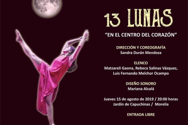 NOTICIAS 09/08/201913 Lunas llegará al Jardín de CapuchinasEl Jardín de Capuchinas se convertirá en Un Gran Escenario con la función de "13 Lunas" que la Secretaría de Cultura de Morelia presentará este jueves 15 de agosto en el Jardín Capuchinas a las 20:00 horas.