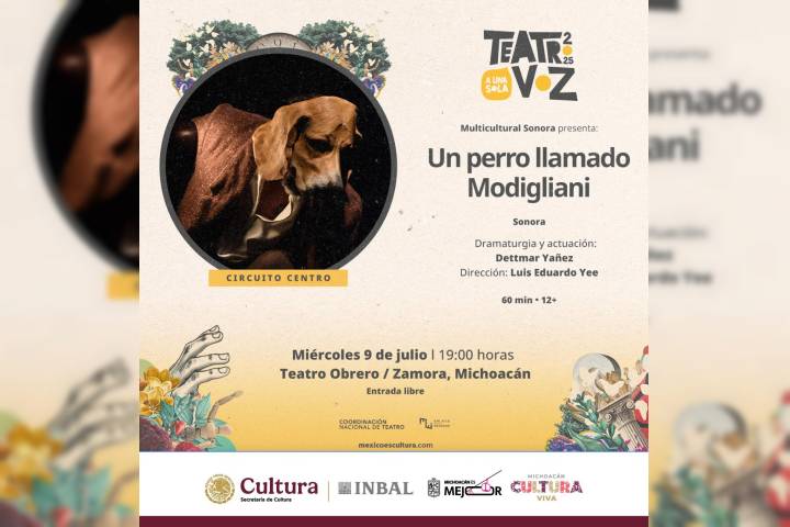 NOTICIAS 09/07/2025 Festival de Monólogos presenta en Zamora "Un perro llamado Modigliani"Este miércoles 9 de julio a las 19:00 horas, el Teatro Obrero de Zamora será escenario del monólogo "Un perro llamado Modigliani", una obra cargada de humor, sensibilidad y crítica, que llega como parte del 20 Festival de Monólogos, Teatro a una sola voz.