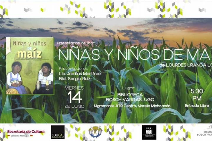 NOTICIAS 10/06/2019Con inteligencia e imaginación, hablarán en Morelia del maÃz"Niñas y niños de maÃz" es el nombre del libro de Lourdes Uranga López, quien llega este viernes a Morelia para hablar con inteligencia e imaginación de esta prodigiosa planta.