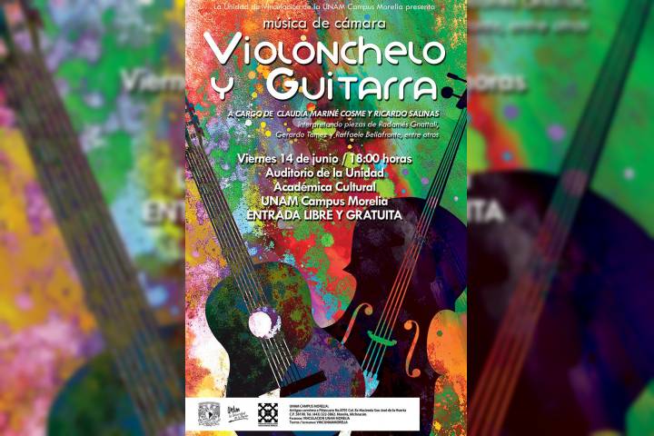 NOTICIAS 10/06/2019UNAM Morelia invita al concierto gratuito de música de cámara con violonchelo y guitarra