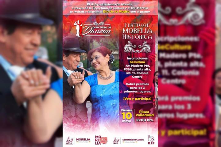 NOTICIAS 09/05/2019Disfruta el 10 de mayo con mega clase de danzón en el Centro¿Aún no tienes regalo y deseas consentir a tu mamá?, la Secretaría de Cultura de Morelia en colaboración con el DIF Municipal, te invitan al Concurso de Danzón este 10 de mayo en la Plaza Valladolid a partir de las 6:00 de la tarde.