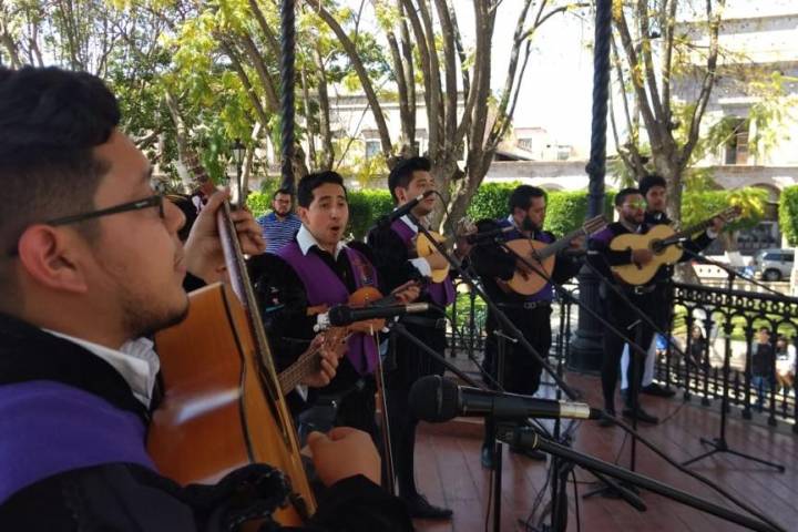 La primera interacción artÃstico-cultural realizada en el quiosco de la Plaza de Armas corrió a cargo de La Tuna del Distrito Universitario de Michoacá... Ver más...
