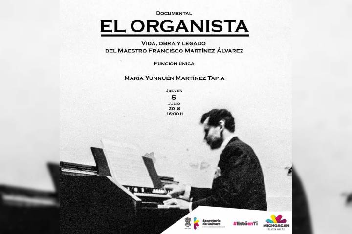 NOTICIAS 03/07/2018Secum proyectará "El organista" en Clavijero Con el propósito de preservar la obra artística y legado del maestro Francisco Martínez Álvarez, y a manera de tributo por su ardua labor, María Yunnuén Martínez Tapia realizó el documental "El organista", el cual será presentado el próximo 5 de julio a las 16:00 horas, en el Auditorio del Centro Cultural Clavijero.