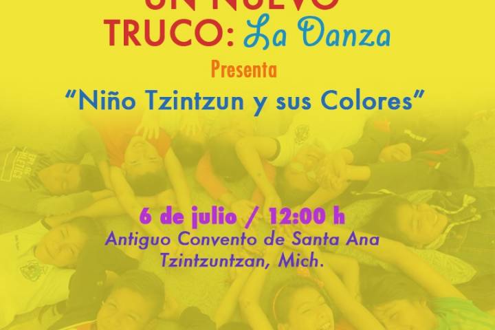 NOTICIAS 05/07/2018Mañana en Tzintzuntzan se presentará "Niño Tzintzun y sus colores" Resultado del taller de Iniciación a la danza y Expresión Corporal "Un Nuevo Truco: La Danza", mañana viernes 6 de julio a las 12:00 horas, en el Antiguo Convento de Santa Ana, en Tzintzuntzan, se presentará "Niño Tzintzun y sus colores".