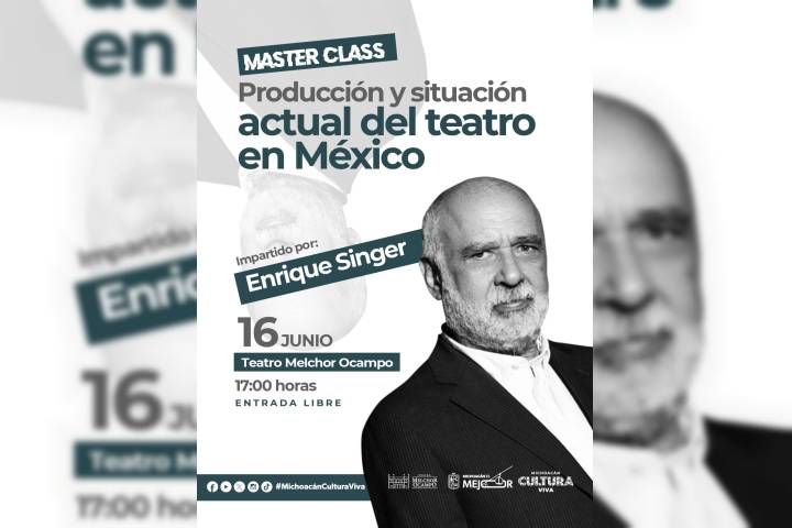 NOTICIAS 16/06/2025Enrique Singer llega a Morelia con clase magistral sobre teatro mexicano: SecumLa Secretaría de Cultura de Michoacán (Secum) invita a la comunidad artística y al público en general a la clase magistral que ofrecerá el reconocido actor y director Enrique Singer, este lunes 16 de junio a las 17:00 horas en el Teatro Ocampo. La entrada será gratuita.