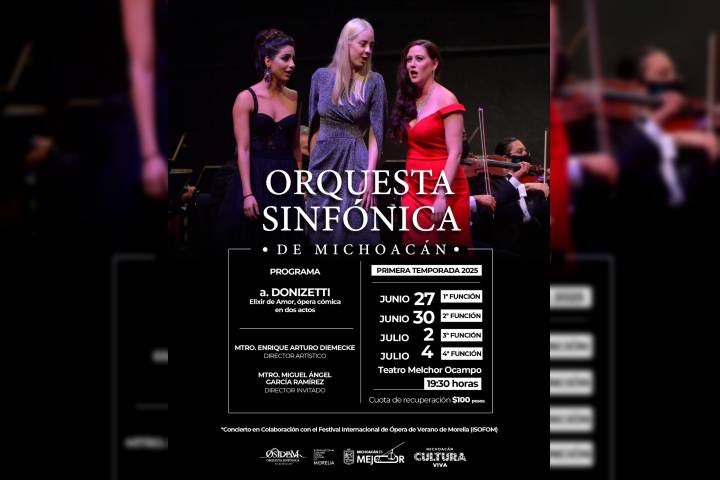 NOTICIAS 16/06/2025Vive la magia de la ópera con la Osidem en el Teatro Ocampo: SecumLa Secretaría de Cultura de Michoacán (Secum) te invita a vivir una experiencia musical diferente con la Orquesta Sinfónica de Michoacán (Osidem) y el Festival Internacional de Ópera de Verano de Morelia.