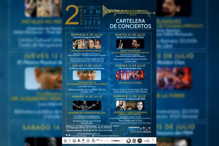 Pensado como un espacio de difusión y promoción musical, es como fue conformado el Festival Rafael Méndez [FRM], un proyecto cultural organizado por la "Orquesta y Coro Esperanza Azteca Michoacán" que tendrá lugar en esta ciudad de Morelia entre el 8 y el 15 de julio.