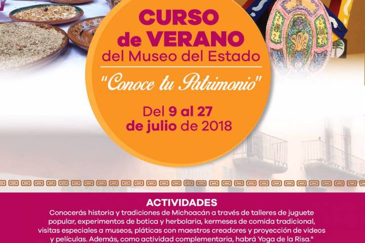 NOTICIAS 27/06/2018Abren inscripciones para Curso de Verano en el Museo del Estado Como ya es tradición y con el fin de difundir el patrimonio de la entidad entre la población infantil, el Museo del Estado invita a niñas y niños de 6 a 13 años a participar en su Curso de Verano titulado "Conoce tu patrimonio", el cual se realizará del 9 al 27 de julio, en un horario de 9:30 a 13:30 horas.
