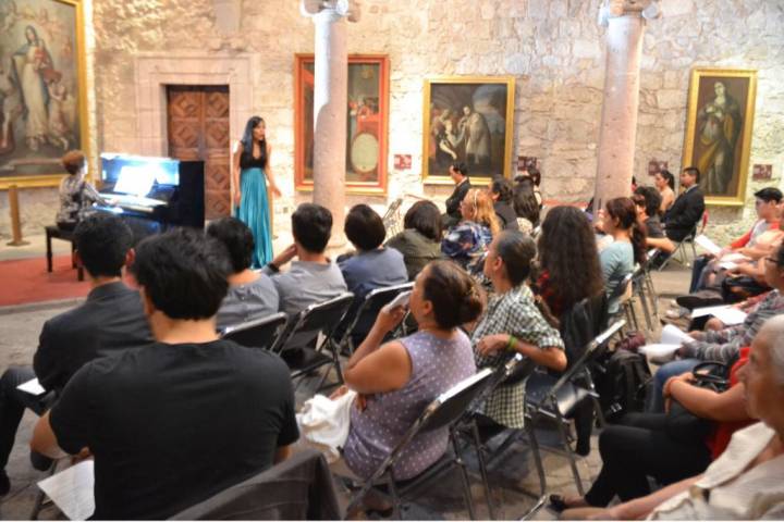 NOTICIAS 25/05/2018Estudiantes de la Michoacana se presentaron en el MacolEn el marco de su programa Jueves de Coloquios, el Museo de Arte Colonial (Macol), recibió a alumnos de la Universidad Michoacana de San Nicolás de Hidalgo (UMSNH), quienes ofrecieron un recital de canto y piano con arias de ópera y lied, bajo la dirección artística de Gladys Miriam Pavón Torres.