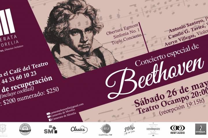 La Camerata de Morelia presentará su tercer concierto dentro del marco de su Primera Temporada de Conciertos. En esta ocasión presentará un Concierto Especial de "Beethoven" este próximo sábado 26 de Mayo en el Teatro Melchor Ocampo a las 20:00 Horas.