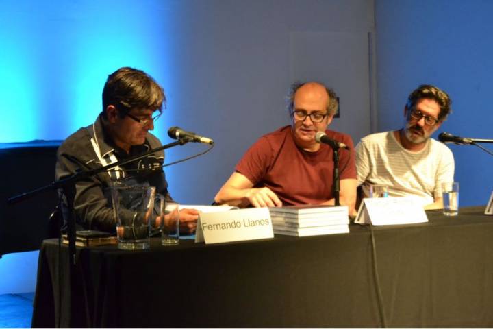 Durante la charla ante los asistentes, Rocha Iturbide estuvo acompañado por el también compositor Juan Sebastián LachLau y por el artista Fernando Llanos.
