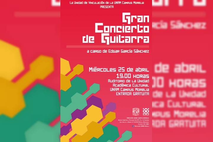Con un repertorio de música popular mexicana, latinoamericana y clásica, el próximo miércoles 25 de abril, a las 19:00 horas se presentará el guitarrista Edgar Miguel García, en el Auditorio de la Unidad Académica Cultural de la UNAM Campus Morelia, con entrada libre y gratuita.