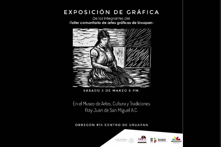 NOTICIAS 28/02/2018Este sábado, la inauguración del Taller Comunitario de Artes Gráficas en Uruapan El próximo sábado 3 de marzo a las 18:00 horas en el Museo de Artes, Cultura y Tradiciones Fray Juan de San Miguel A.C., de Uruapan, se inaugurará la exposición con trabajos creados por los integrantes del Taller Comunitario de Artes Gráficas, proyecto apoyado por el Gobierno Federal en el marco del programa México Cultura para la Armonía, y coordinado por la Secretaría de Cultura de Michoacán (Secum), depedencia encabezada por Silvia Fi... Ver más...