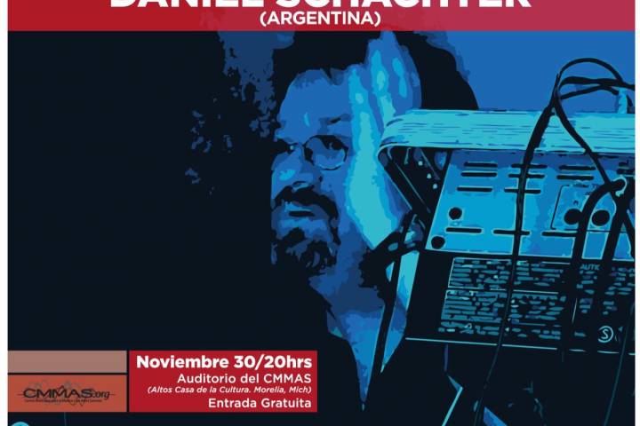 NOTICIAS 28/11/2017Este jueves en el CMMAS, concierto de Daniel Schachter Este jueves 30 de noviembre, el Centro Mexicano para la Música y las Artes Sonoras (CMMAS) presentará, de manera gratuita, el concierto del compositor argentino Daniel Schachter, quien recién terminó un periodo de residencia creativa en el Centro con el apoyo de Ibermúsicas. El concierto será a las 20:00 horas en el Auditorio del CMMAS, en la planta alta de la Casa de la Cultura de Morelia.