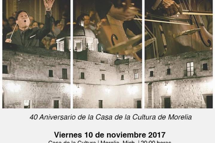 NOTICIAS 08/11/2017Este viernes, concierto de la Osidem en la Casa de la Cultura de Morelia La Casa de la Cultura de Morelia se encuentra de manteles largos al estar celebrando sus primeros 40 años de ?vida', motivo por el cual se han preparado diversas actividades artísticos-culturales de carácter completamente gratuito.