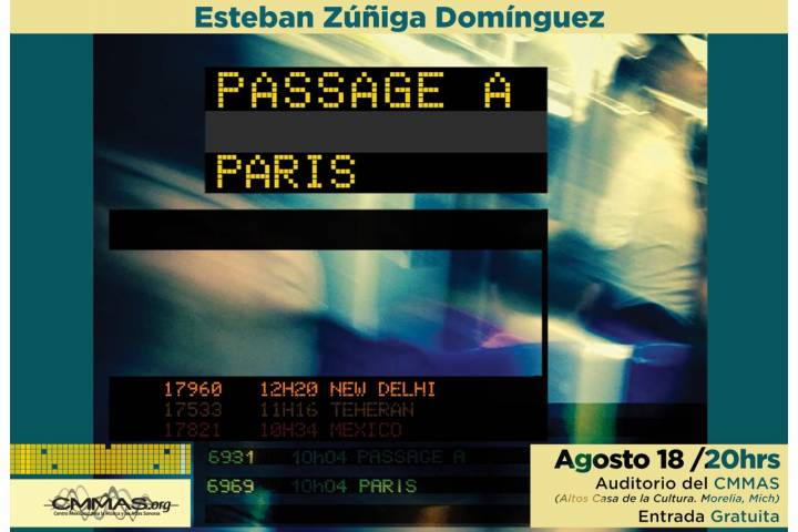 El Centro Mexicano para la Música y las Artes Sonoras (CMMAS) presenta este viernes 18 de agosto el disco "Passage a Paris" coordinado por el compositor mexicano Esteban Zúñiga Domínguez. El disco es un compendio de compositores formados por el reconocido compositor y profesor francés Denis Dufour.