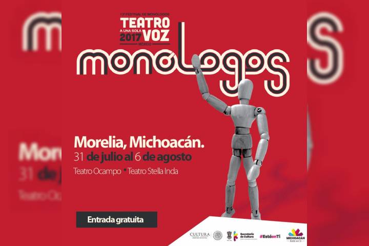 NOTICIAS 27/07/2017Teatro a Una Sola Voz llega a MichoacánDel 31 de julio al 6 de agosto, Morelia será sede del 13º Festival de Monólogos Teatro a una sola voz, corredor escénico único en su tipo creado para desarrollar el trabajo unipersonal en nuestro país. En esta edición participarán 7 compañías en 11 entidades federativas, funciones que se realizarán con el auspicio de la Secretaría de Cultura Federal, el Instituto Nacional de Bellas Artes, y el de la Secretaría de Cultura de Michoacá... Ver más...