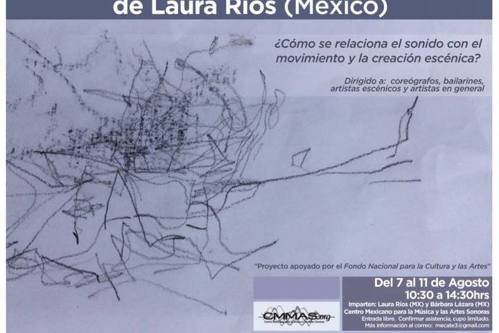 NOTICIAS 28/07/2017CMMAS ofrece taller gratuito de creación escénicaEl Centro Mexicano para la Música y las Artes Sonoras (CMMAS) ofrecerá de manera gratuita el taller de creación escénica "Permite que suceda" impartido por las artistas mexicanas Laura Ríos y Bárbara Lázara. El taller se desarrollará del 7 al 11 de agosto de 10:30 a 14:30 horas.