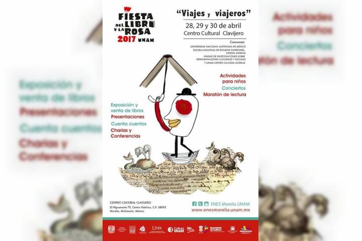 La cuarta edición del Libro y la Rosa 2017 en la ciudad de Morelia está dedicada a los Viajes y Viajeros, y se celebrará los días 28, 29 y 30 de abril en el Centro Cultural Clavijero ubicado El Nigromante N°79, en el Centro Histórico de la ciudad.