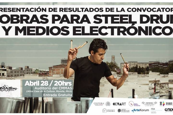 NOTICIAS 27/04/2017En el CMMAS, una selección internacional de obras nuevas para Steel Drum El Centro Mexicano para la Música y las Artes Sonoras (CMMAS) presentará este viernes 28 de abril el concierto de estreno en México de las piezas ganadoras de la convocatoria internacional "Obras para Steel Drum y medios electrónicos", lanzada el año pasado en una colaboración entre el CMMAS y la Universidad de Costa Rica.