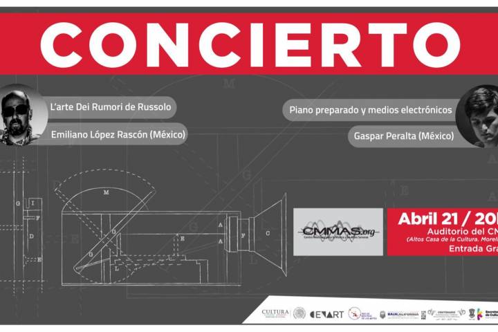 NOTICIAS 20/04/2017CMMAS presenta concierto de arte sonoro, piano y medios electrónicos El Centro Mexicano para la Música y las Artes Sonoras (CMMAS) presenta este viernes 21 de abril, una sesión de concierto con la presentación de dos propuestas a cargo de los artistas sonoros mexicanos Gaspar Peralta y Emiliano López. En sesiones de 30 minutos, cada uno ofrecerá su visión del arte sonoro de nuestros días, el primero con un concierto de piano y medios electrónicos y el segundo con una histórica carta hecha partitura. El c... Ver más...