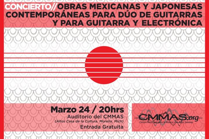 NOTICIAS 23/03/2017En el CMMAS, dos de los más reconocidos guitarristas de México y JapónComo parte de las actividades de promoción de la música contemporánea con y sin nuevas tecnologías, el Centro Mexicano para la Música y las Artes Sonoras (CMMAS), espacio que opera con el apoyo del Centro Nacional de las Artes y la Secretaría de Cultura de Michoacán (Secum), presenta este viernes 24 de marzo el concierto de Norio Sato (Japón) y Juan Carlos Laguna (México), reconocidos guitarristas ganadores de importantes premios interna... Ver más...