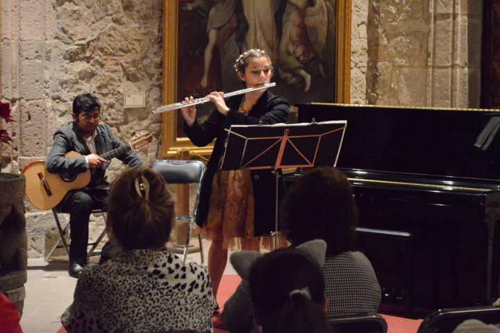 NOTICIAS 27/03/2017En el Museo de Arte Colonial, gran concierto del Dúo Stacatto Ensamble de Guitarra y Flauta Piezas como "Recuerdos de la Alhambra", de Francisco Tárrega; Estudio I, XII de H.Villa-Lobos; "Asturias" de Isaac Albéniz y "Libertango" de Astor Piazzolla, entre otras, fueron presentadas por el Dúo Stacatto Ensamble de Guitarra y Flauta, durante su concierto ofrecido en el Museo de Arte Colonial en el marco del programa Jueves de Coloquios, con apoyo de la Secretaría de Cultura de Michoacán (Secum).