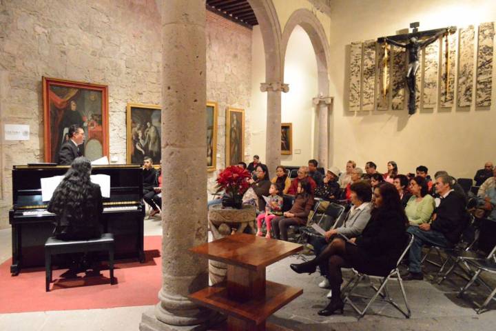 NOTICIAS 24/02/2017Damián González García ofreció recital en el Museo de Arte ColonialUn recital que incluyó música sacra y arias de ópera, fue el presentado con mucho cariño por el tenor Damián González García en el Museo de Arte Colonial, acompañado al piano por Laura Carrasco, como parte del programa Jueves de Coloquios, con auspicio de la Secretaría de Cultura de Michoacán (Secum).