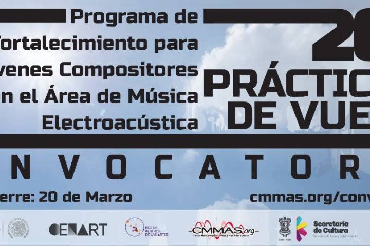 NOTICIAS 01/03/2017Abre convocatoria "Prácticas de Vuelo 2017"La Secretaría de Cultura del Estado de Michoacán (Secum), a través del Centro Mexicano para la Música y las Artes Sonoras (CMMAS), con el respaldo del Centro Nacional de las Artes (CENART) dio a conocer la convocatoria para la edición número 11 del programa "Prácticas de Vuelo", que ofrece cursos, tutorías y actividades académicas para apoyar los proyectos creativos de jóvenes compositores electroacústicos. La convocatoria va dirigida ... Ver más...