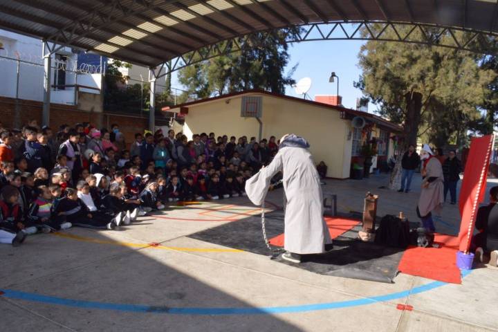 NOTICIAS 15/12/2016Niños de la primaria Himno Nacional disfrutan de la obra Cuento de NavidadLa Escuela Primaria Himno Nacional de la ciudad Morelia, recibió la puesta en escena "Cuento de Navidad" de Charles Dickens, pero con la adaptación de la compañÃa de arte interdisciplinario Dinas Bran, que llegó a dicha institución gracias al esfuerzo de la SecretarÃa de Cultura Federal y la SecretarÃa de Cultura de Michoacán (Secum) mediante la coordinación estatal del programa Alas y RaÃces, para mostrar ante los menores una producci... Ver más...