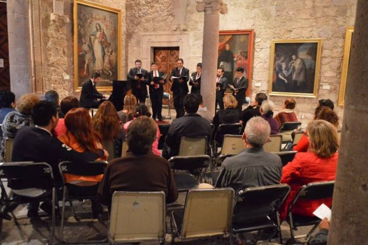 NOTICIAS 18/11/2016Coro Sursum Corda, en el Museo Arte ColonialEn el marco de los Jueves de Coloquios que lleva a cabo la Secretaría de Cultura de Michoacán (Secum) en el Museo de Arte Colonial, se presentó el Coro "Sursum Corda", agrupación que regaló a los asistentes una velada llena de música popular mexicana.