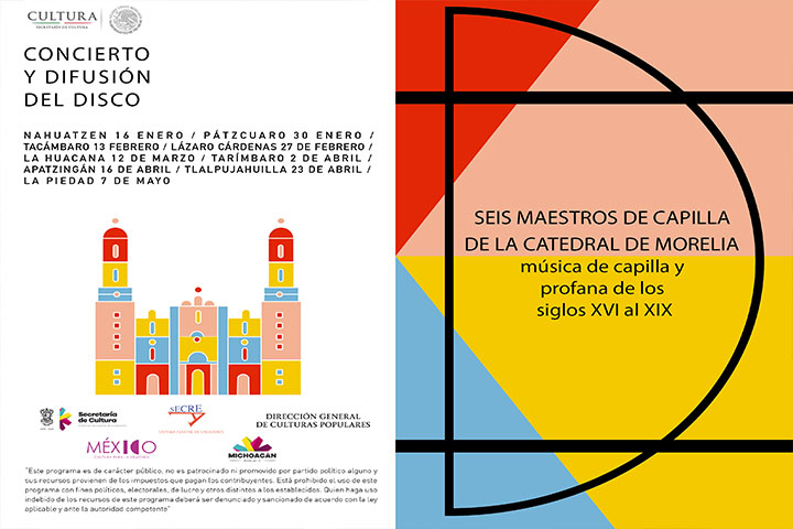 Con el objetivo de dar difusión al disco "Seis Maestros de Capilla de la Catedral de Morelia: música de capilla y profana de los siglos XVI al XIX"; proyecto apoyado por el Programa "México: Cultura para la Armonía 2014 y 2015", se llevarán a cabo una serie de presentaciones en las nueve zonas culturales de Michoacán, del 16 de enero al 7 de mayo de este año.