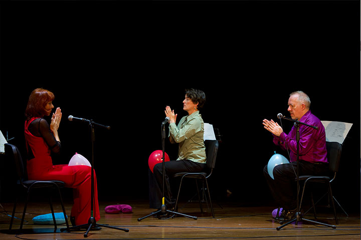 Durante más de dos horas el ensamble integrado por Katarina Rasinsky, Steffi Weismann y Michael Hirsch, ofreció al público asistente un programa con formatos que oscilan entre los límites de la ópera y la experimentación vocal.